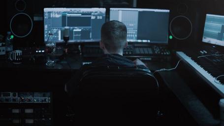 Keywords: at computer guy musician microphone studio recording computer monitor screen internet