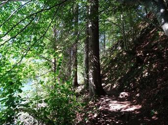 Keywords: at the lake in the forest soothing nature italy landscape green forest path park forest summer light sun trees