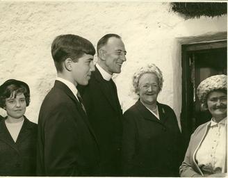 | Keywords: The Very Rev. Dr. Francis B. Sayre, Dean of Washington, at the door of the cottage with the Misses Mary and Susan Wilson. Also in the picture is Dean Sayre's son, Tom. Date: unknown. The Very Rev. Dr. Francis B. Sayre, Dean of Washington, at the door of the cottage with the Misses Mary and Susan Wilson. Also in the picture is Dean Sayre's son, Tom. Date: unknown. |