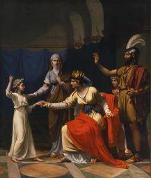 | Keywords: Atalía y Joás, de José Aparicio (Real Academia de Bellas Artes de San Fernando).JPG En el siglo IX a C la reina Atalía de Judá que fue la esposa del rey Joram ordenó asesinar a todos los miembros de su familia a fin de que ella misma pudiera reinar tras la muerte de su hijo Ocozías Pero Joás hijo de Ocozías fue escondido y consiguió salvarse y cuando cumplió siete años fue proclamado rey de Judá en el Templo de Jerusalén y la reina Atalía fue asesinada según consta en el Segundo Libro de los Reyes y en el Segundo Libro de las Crónicas 1804 oil canvas Size cm 230 270 Institution Real Academia de Bellas Artes de San Fernando http //www realacademiabellasartessanfernando com/assets/docs/guia_museo/guia_museo pdf object history exhibition history credit line accession number 384 http //ceres mcu es/pages/Main PD-old-100 Athaliah Jehoash of Judah Paintings by José Aparicio in the Royal Academy of Fine Arts of San Fernando 19th-century paintings in the Royal Academy of Fine Arts of San Fernando Uploaded with UploadWizard |