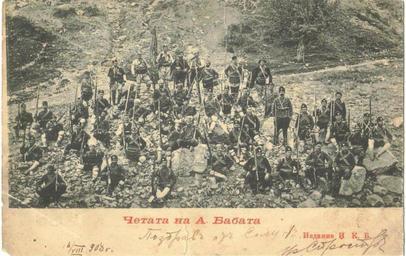 Keywords: Atanas Babata.JPG bg Четата на Атанас Бабата en Atanas Babata's band postcard Author 1903-1906 Anonymous-EU Atanas Babata IMARO