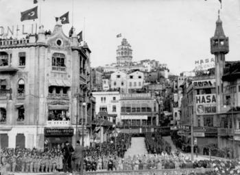 | Keywords: atatürk'ün naaşı atatürkünnaaşı atatürk'ün cenaze töreni atatürküncenazetöreni 10 kasım 10kasım 19 kasım 1938 19kasım1938 1938 dolmabahçe karaköy atatürk's funeral atatürksfuneral atatürk's funeral ceremony atatürksfuneralceremony november 10 november10 naaş funeral cenaze töreni cenazetöreni funeral ceremony funeralceremony november 19, 1938 november191938 karaköy meydanı karaköymeydanı salt araştırma saltaraştırma salt research saltresearch salt online saltonline galata bonmarşesi galatabonmarşesi karaköy camii karaköycamii wagon lits cook wagonlitscook vagonli kook vagonlikook wagon lits cook - i̇stanbul wagonlitscookistanbul blackandwhite monochrome outdoor architecture building black and white www.archives.saltresearch.org/R/-?func=dbin-jump-full&amp... Atatürk’ün naaşı 19 Kasım 1938 sabahı Dolmabahçe’den törenle alınarak Kabataş, Tophane, Karaköy ve Gülhane Parkı yolu üzerinden Sarayburnu’na nakledildi. Yavuz Zırhlısı ile İzmit’e gönderildi, oradan da aynı günün akşamı Ankara’ya uğurlandı. SALT Araştırma, Ali Saim Ülgen Arşivi www.archives.saltresearch.org/R/-?func=dbin-jump-full&amp... Atatürk’ün naaşı 19 Kasım 1938 sabahı Dolmabahçe’den törenle alınarak Kabataş, Tophane, Karaköy ve Gülhane Parkı yolu üzerinden Sarayburnu’na nakledildi. Yavuz Zırhlısı ile İzmit’e gönderildi, oradan da aynı günün akşamı Ankara’ya uğurlandı. SALT Araştırma, Ali Saim Ülgen Arşivi |