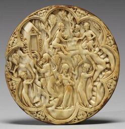 | Keywords: Atelier of the Boxes - Mirror Cover with Lovers Playing Chess and a Dispute between the Sexes - Walters 71206.jpg On this circular mirror back a sequential story is shown in three scenes; above a young couple plays chess at the right a woman threatens a bearded man or hermit with a broom at the left and center the bearded man climbs up to a house still threatened by the broom-wielding woman The scenes are surrounded by an eight-lobed frame adorned with masks A similar unidentified story concerning an elder and young couple is represented on Walters 71 283 an ivory box attributed to the Atelier of the Boxes The mirror back likely was made in the same workshop middle Other date century 14 Medieval ivory cm 9 5 accession number 71 206 6180 Henry Walters Baltimore 1929 by purchase Walters Art Museum Henry Walters Acquired by Henry Walters 1929 Images in Ivory Precious Objects of the Gothic Age The Detroit Institute of Arts Detroit; The Walters Art Gallery Baltimore 1997 place of origin north France Walters Art Museum license French carved ivory mirror cases in the Walters Art Museum 14th-century carved ivory mirror cases Atelier of the Boxes Chess players in ivory Media contributed by the Walters Art Museum needs artist update |
