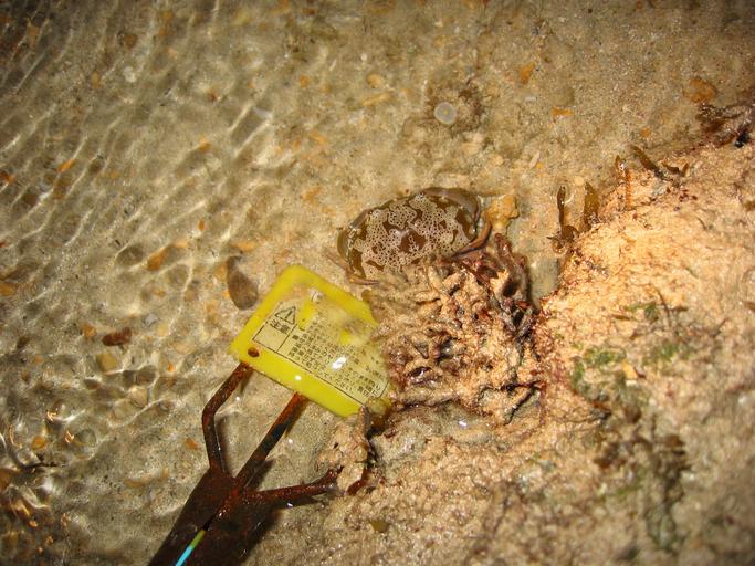 | Keywords: Atergatis floridus3.jpg en Atergatis floridus toxic tiny crab It's size with respect to the tip of harpoon The photo was taken at Haemida beach Iriomote island Japan I did not injure or eat him after the scene This harpoon is only for a comparison He alives and me also <br /> ja 潮間帯で佇 スベスベマンジュウガニ モリの先端と比較しての大きさ 沖縄 西表島 南風見田 にて撮影(2006年2 28日) own The photo was taken on Feb 28 2006 uploaded to commons by Was a bee on March 30 2007 by Was a bee Public domain 100px Atergatis floridus Iriomotejima Nature of Okinawa prefecture |