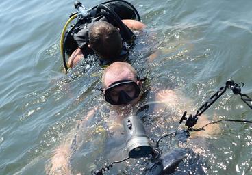 | Keywords: ATFP Dive 130930-N-PX130-033.jpg en Mass Communication Specialist 1st Class Gary Keen tests his underwater camera gear while Explosive Ordnance Disposal Technician 1st Class Charles Walters checks Keen's scuba equipment for leaks before performing an anti-terrorism force protection inspection dive as part of day-to-day operations protecting freedom of movement and the flow of commerce Both sailors are assigned to Commander Task Group CTG 56 1 CTG-56 1 conducts mine countermeasures explosive ordnance disposal salvage-diving and force protection operations throughout the 5th Fleet area of responsibility U S Navy photo by Mass Communication Specialist 1st Class Daniel Gay/Released 2013-09-30 Petty Officer 1st Class Daniel Gay https //www dvidshub net/image/1029555 130930-N-PX130-033 2013-10-02 13 13 NAVAL SUPPORT ACTIVITY BAHRAIN BH PD-USGov-Military-Navy Naval Support Activity Bahrain Images from DoD uploaded by Fæ |