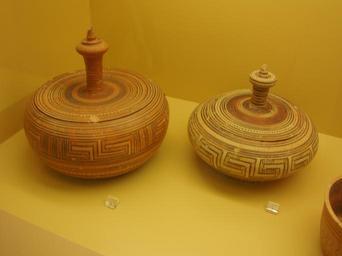 Keywords: Athen Stoa Mäander.jpg Museum in der Stoa Athen own 2008 --Xocolatl 08 55 15 April 2008 UTC s o 37 58 30 4 N 23 43 27 1 E Ancient Greek Geometric pottery in the Ancient Agora Museum Athens