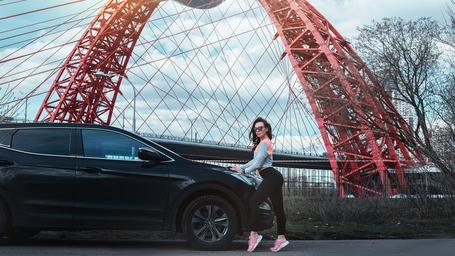 Keywords: athletic girl beauty emotions female posture long hair hairstyle view photoshoot fashion sitting woman jacket youth girls model nature bridge beautiful greens living nature summer outdoors hair