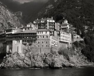 Keywords: athos mountain greece orthodox pilgrimage great aegean sea monastery orthodox monastery the orthodox church landscape nature black and white cliff forest mountain stone mountains monachism construction travel