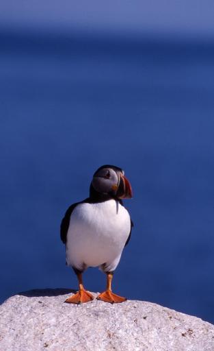 Keywords: atlantic puffin bird waterfowl wildlife nature rock sea ocean portrait seabird looking standing