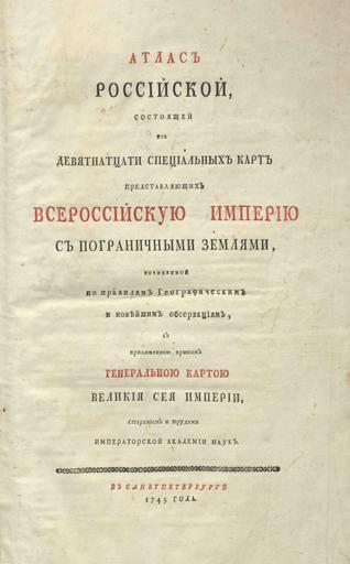 Keywords: Atlas of Russian Empire (1745). Title-page.jpg Atlas of the Russian Empire 1745 Introduction-p1 jpg Титульный лист пе вого официального атласа Российской импе ии 1745 en Title-page of first official geographic atlas of the Russian Empire 1745 Атлас Российский 1745 циф овая копия сделана Российской госуда ственной библиотекой http //www rsl ru en Geographic atlas of the Russian Empire 1745 digital copy made by Russian State Library http //www rsl ru/en Делиль Ж - и д Academy of Science 1745 thumb Д угой ва иант обложки чё но-белый en Another variant of cover black white PD-old-100 Atlas of Russian Empire 1745 year Title pages of atlases |