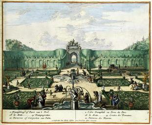 | Keywords: Atlas Van der Hagen-KW1049B11 075 9-Uitzicht vanaf de fonteingrotten op de triomfboog.jpeg of the Atlas Van der Hagen in the catalogue of the KB http //opc4 kb nl/DB 1/TTL 1/LNG EN/PPN PPN 353012750 Creator Romeyn_de_Hooghe Author Designé et gravé par Romain de Hooghe Publisher Creator Nicolaes_Visscher_II Author Designé et gravé par Romain de Hooghe Publisher Creator Nicolaes_Visscher_II credit line ca 1685 Romeyn de Hooghe 1645-1708 graveerde omstreeks 1685 in opdracht van de uitgever Nicolaes Visscher II 1649-1702 een serie prenten van de beroemde tuin van Enghien even ten zuiden van Brussel In dit grote park waren verschillende fonteinen ontworpen waaronder deze grotfontein Met de aanleg van deze grot een kostbare aangelegenheid bedoelde de tuinarchitect een denkbeeldige wereld van stenen schelpen en water te scheppen Een imitatie van de natuur die bij uitstek verbonden met allerlei klassieke denkbeelden over natuur kunst en niet te vergeten de liefde ; Cijfers 2 18-20 worden verklaard in een legenda onder aan de prent Rechtsonder I Samen op 1 blad met G The print shows the complex of pleasure gardens of Enghien near Brussels The plan is part of a series of prints commissioned by Nicolaes Visscher II 1649-1702 and engraved by Romeyn de Hooghe 1645-1708 A number of fountains were designed for this parc this grotto fountain being one of those With this grotto fountain the garden architect tried to invoke an imaginary world of stones shells and water This was an imitation of nature linked with classical ideas about nature art and above all love 23 x 28 cm exhibition history Institution Koninklijke Bibliotheek kopergravure Technique copper engraving KW1049B11_075_9 - Volume 1 Romeyn de Hooghe - Nicolaes Visscher II - Prinsen van Darenberg Information field Depicted locations Belgium - Brussels - Enghien object history object type Prent Print PD-old-100 place of creation place of discovery Source page at the http //resolver kb nl/resolve urn urn gvn KONB01 204 Geheugen van Nederland / Memory of the Netherlands website Koninklijke Bibliotheek Uitzicht vanaf de fonteingrotten op de triomfboog Uploaded with GWToolset Atlas Van der Hagen-KW1049B11_075_9-Uitzicht vanaf de fonteingrotten op de triomfboog http //resolver kb nl/resolve urn urn gvn KONB01 1049B11_075_9 size large Atlas van der Hagen Parc d ™Enghien in art |
