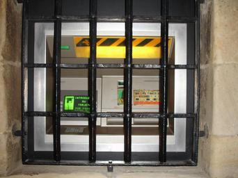 Keywords: ATM in Santillana.JPG en Very well protected ATM but I think the bars were there earlier Own Handige Harrie 2008-08-01 PD Automatic teller machines