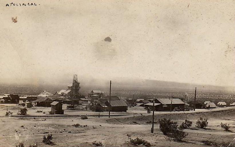 | Keywords: Atolia Mine 1908.JPG Atolia mining operations ” including the mine and mining buildings outlying tents electrical telephone wires the Randsburg Railway tracks and a windmill The postcard has an AZO back which is typical of the time between 1904-1918 The date of the photograph is approximate to around 1908 with no real accuracy Old Postcard from around 1908 author 1908-06-30 PD-old Mining in California Mojave Desert San Bernardino County California California in the 1900s Postcards of California Black and white photographs of California |