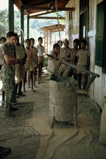 Keywords: Atsabe--Descascando o arroz.jpg pt Curioso engenho tradicional timor destinado a descascar o néli arroz com a casca own Norberto Benigno 1968/1970 Foi publicado no Facebook Rice farming in East Timor Atsabe Vila Portuguese Timor Rice mills