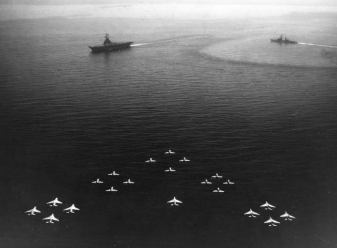 | Keywords: Attack Carrier Air Wing 8 aircraft approach USS Shangri-La (CVA-38) in 1968.jpg A formation of eight Vought F-8C Crusaders one RF-8G four Douglas A-4B Skyhawks and eight A-4Cs from Attack Carrier Air Wing 8 CVW-8 approaches United States Navy surface units during a Mediterranean air show 1968 CVW-8 was assigned to the aircraft carrier USS Shangri-La CVA-38 visible in the background for a deployment to the Mediterranean Sea from 15 November 1967 to 4 August 1968 Official U S Navy photo http //www history navy mil/our-collections/photography/numerical-list-of-images/nhhc-series/nh-series/NH-71000/NH-71865 html NH 71865 from the U S Navy http //www history navy mil Naval History and Heritage Command 1968 U S Navy PD-USGov-Military-Navy F-8C Crusader A-4C Skyhawk United States Navy carrier air wings USS Shangri-La CV-38 |