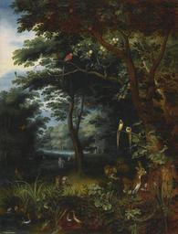 | Keywords: Attributed to Jan Breughel the Younger The Garden of Eden with two Depictions of Adam and Eve.jpg The Garden of Eden with two Depictions of Adam and Eve oil on panel; the reverse stamped with the Antwerp Guild mark; 63 8 x 48 7 cm http //www sothebys com Sotheby's Sale N08952 New York 2013-01-31 “2013-02-01 ~ 1620 attributed to after <gallery> File Jan Brueghel I - The Earthly Paradise - WGA3551 jpg Version by Jan Breughel the Elder Prado File Jan Brueghel the Younger Paradise jpg A version by the Younger Gemäldegalerie Berlin </gallery> PD-art-100 Images from Sotheby's History paintings by Jan Breughel II Garden of Eden in paintings |