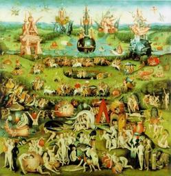 | Keywords: Attributed to Michiel Coxie 001.jpg attributed to LangSwitch Hieronymus Jheronimus Bosch Other date between 1514 1568 Oil on panel cm 184 178 Unknown accession number object history by 1614 Royal Palace of El Pardo El Pardo ˜Trafago del mundo ™ by 1636 Royal Palace of Madrid Madrid ˜Una tabla quadrada al óleo que parce de Gerónimo Bosco con moldura dorada y negra con mucha diversidad de figuras en lo alto una laguna en que está un globo con un remate encima y en lo bajo dos figuras a cada lado la suya de negros y cada uno una cereza colorada en la caveza Otras dos tablas que eran puertas de la dicha arriba y en la una de ellas está pintada Dios Padre vestido de colorado en medio de Adán y Eva desnudos y un gato bermejo con un ratón en la boca y en la otra todos los tormentos de los ciete pecados mortales y en lo bajo un puerco vestido de monja que esteba besando a un hombre ™ by 1776 Royal Palace of El Pardo El Pardo ProvenanceEvent Private collection Brussels by 1967 Comte de Pomereu Paris exhibition history no image After LangSwitch Hieronymus Jérôme Jheronimus Bosch Tuin der Lusten cm 184 178 Paris Comte de Pomereu credit line Anonymous 20049593 Follower of LangSwitch Hieronymus Jérôme Jheronimus Bosch Tuin der Lusten - 1501 1550 cm 186 177 Michiel Coxie Kopie middenpaneel Tuin der Lusten before 1568 color image boijmans cultuurwijs nl http //boijmans cultuurwijs nl Home http //boijmans cultuurwijs nl/onderw/ckvbosch/index htm Info http //boijmans cultuurwijs nl/onderw/ckvbosch/graph/12coxc3 jpg Pic Bosch Copyist Garden of Earthly Delights jpg Version in black and white Hieronymus Bosch - The Garden of Earthly Delights - Garden of Earthly Delights Ecclesia's Paradise jpg Original PD-old-100 Michiel Coxie Works after The Garden of Earthly Delights 02 16th-century oil on panel paintings 16th-century oil on canvas paintings 16th-century paintings in unidentified private collections |