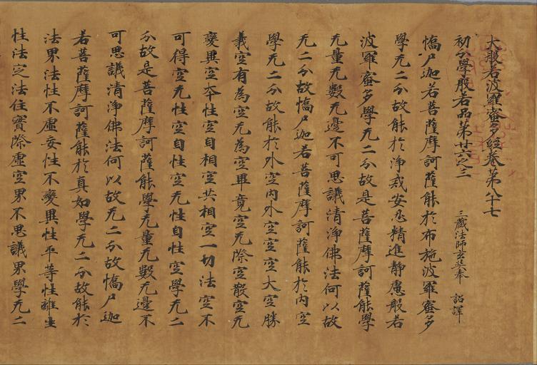 | Keywords: Attributed to Zhang Sengyao - Daihannya-Gyo Sutra (Yakushi-ji Version) - Google Art Project.jpg commons date commons medium commons dimensions commons institution Institution Osaka City Museum of Fine Arts commons location commons references commons object_history commons exhibition_history commons credit_line commons inscriptions commons notes commons accession_number commons source commons permission commons other_versions commons zoom core title Daihannya-Gyo Sutra Yakushi-ji Version core creator Attributed to Zhang Sengyao core date dateCreated 0700/0800 core location locationCreated Japan core format w1034 x h27 7 cm core type Calligraphy core rights Osaka City Museum of Fine Arts core format medium Ink on paper c-05eb813c customtext artist_name japanese ä¼ ãƒ»æ 野éšé¤Š c-05eb813c customtext title japanese 大般若経(薬師寺経) c-05eb813c customtext period japanese 奈良ã 8ä¸–ç´ c-05eb813c customtext credit_line japanese 田万コレクション google display_date 0700/0800 google is_artproject TRUE google is_gigapixel FALSE google is_secured TRUE google partner/id 0000000005eb813c google picasa_token Uj4tt8k1IZKB8WtSGhZlqUL7R5M special url_id jQGTYaQo1WJACw google partner/name Osaka City Museum of Fine Arts special partner/name_no_lang Osaka City Museum of Fine Arts PD-old-100-1923 Google Art Project works by Zhang Sengyao attributed Zhang Sengyao |