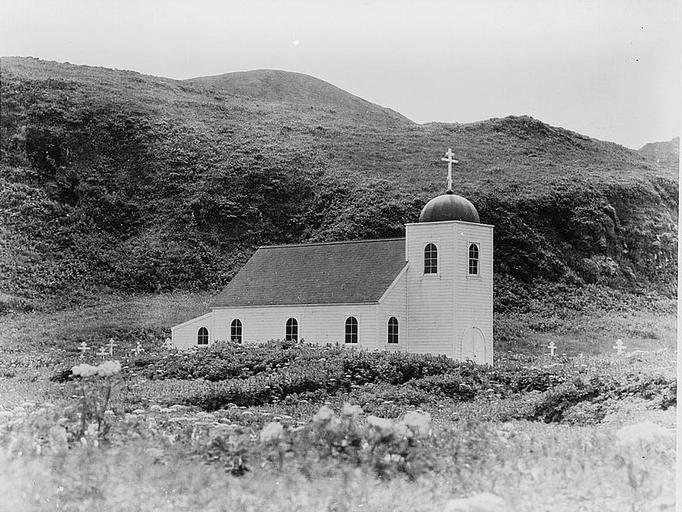| Keywords: AttuChurch1938.jpg Russian Orthodox church and graveyard at Attu Island Alaska 1938 Built in 1932 it replaced an old church which was a grass-roofed barabara built of driftwood The church served the community of 34 Aleutians in Attu Village before the World War II http //www nps gov/aleu/learn/historyculture/upload/4-Attu-Before-the-War pdf Attu before the war Original caption This is the Russian Orthodox church at Attu Village It ministered to the spiritual needs of the two score natives living on Attu Island at the time of the Japanese invasion Some of the Island's wealth of flowers can be seen coming into bloom beside the church Visitors to the Aleutians have expressed surprise at finding within easy reach masses of Alpine flowers which in this country and in Europe mountain climbers scale the highest peaks just to see cph 3a35420 http //www loc gov/item/cph18979/ U S Department of the Interior photo http //www loc gov/pictures/item/owi2001046040/PP/marc/ Farm Security Administration/Office of War Information Black-and-White Negatives 1938-03 O J Murie PD-USGov Russian Orthodox Church Attu Island Alaska 1938 in Alaska |
