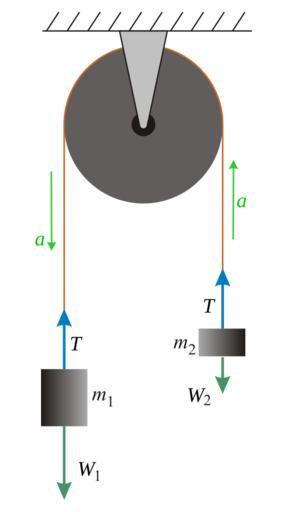 Keywords: Atwood.svg Atwood Machine Schematic own 2008-05-31 Carultch Atwood's machine Pulley force diagrams