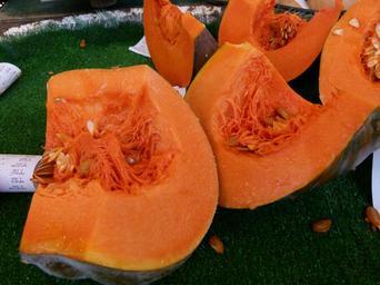 Keywords: Au marché - potiron.JPG fr Au marché - potiron 2012-11-25 13 25 12 own Dinkum cc-zero Uploaded with UploadWizard Cucurbita maxima Cucurbita seeds Products in Paris markets Cultivated Cucurbita of Italy and France Sliced pumpkins