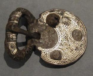 | Keywords: Aubinger Gürtelschnalle517.jpg en Burial object from an early medieval cemetery at Bergsonstraße in Munich-Aubing Germany 5th - 7th century AD Photographed at an exhibition of the Förderverein 1000 Jahre Aubing e V on the occasion of the 1000-year celebrations of Aubing in April 2010 Belt buckle showing faces iron with silver inlay de Grabbeigabe aus dem frühmittelalterlichen Gräberfeld an der Bergsonstraße München-Aubing 5 - 7 Jahrhundert Aufgenommen in der historischen Ausstellung des Fördervereins 1000 Jahre Aubing e V anlässlich der 1000-Jahr-Feierlichkeiten in Aubing April 2010 Gürtelschnalle mit Gesichtern Eisen mit Silbereinlage own Dietzel65 Steffen Dietzel 2010-05-02 History of Aubing Ancient Germanic belt buckles in Germany Bavarii belt buckles Lunulae |