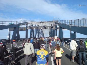 | Keywords: Auckland Harbour Bridge Protest 06.jpg Protesters for a walk- and cycleway across the Auckland Harbour Bridge between Auckland City and en North Shore City in New Zealand shown north of the bridge's central span with many on their way back to the south at this stage The protesters swarmed onto the bridge after several individuals made their way around police barriers and walked / cycled onto the motorway upon which the whole northbound traffic was stopped by police and highway workers in turn animating the rest of the crowd to join them on the now-closed lanes with police deciding to abandon the attempt to turn them back self-photographed 2009-05-24 Uploader -36 8279568 174 7473657 Photos taken by Ingolfson Crowds in New Zealand Protest for a walk- and cycleway across Auckland Harbour Bridge 2009 People of Auckland Trusses |