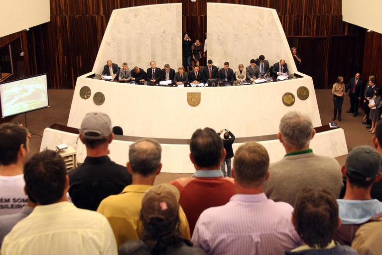 | Keywords: O Plenário da Assembleia Legislativa do Paraná recebeu na manhã desta quarta-feira (23/03) cerca de 1500 pequenos produtores de fumo e lideranças para a audiência pública sobre a produção de fumo no Paraná. Por proposição do deputado Stephanes Junior (PMDB), o evento tratou da possível proibição pela Anvisa da utilização de diversos ingredientes na produção do cigarro. De acordo com o parlamentar, a proibição pode afetar perto de 30 mil pequenos agricultores paranaense e suas famílias, que dependem da fumicultura para o seu sustento. Foto: Nani Gois / Alep |