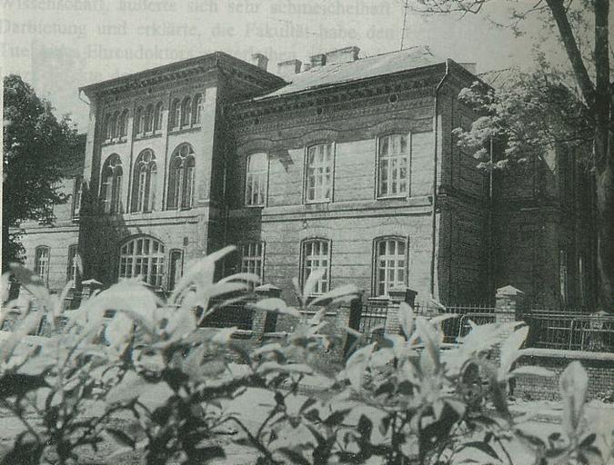 | Keywords: Augenklinik-Koenigsberg.jpg en Clinic of Ophthalmologie in Koenigsberg/ Prussia todays Kaliningrad built 1877 as University Institute de Julius Jacobson 1828 - 1889 richtete ab 1873 ein erstes von der Chirurgie unabhängiges Lehramt für Augenheilkunde in Königsberg ein und erbaute eine erste eigenständige Universitätsaugenklinik in Preußen 1877 in der Straße Lange Reihe Ecke Wagnerstraße Einweiung 1877 Wiederaufbau nach dem Krieg - heutiges Wohnheim Own self made 2012-01-14 Das Bild stammt aus dem von mir Benutzername verswalteten Familienarchiv der Franz-Neumann-Stiftung und dient dem Einbau in die deutsche Seite von Julius Jacobson Cc-zero Buildings in Königsberg Albertina Königsberg |