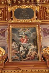 | Keywords: Augsburg 2013-03-13-2265.jpg de Wandbild im Goldenen Saal Augsburg Es ist eine Rekonstruktion des Werkes des Augsburger Künstlers Hans Rottenhammer das über einem der Portale angebracht ist Es zeigt eine auf einer Wolke schwebende sitzende Kaiserin die in der Linken das Augsburger Stadtwappen und in der Rechten eine Zirbelnuss hält à ber ihr schwebt von zwei Putten getragen das Reichsadler-Wappen Im Vordergrund eine Frauengestalt mit Ähren und Früchten sowie Personifikationen der vier Augsburger Flüsse Lech Wertach Singold und Brunnenbach welche einen nie versiegenden Strom von Wasser aus ihren Krügen ausgießen 2013-03-13 own Slick cc-zero Augsburg Goldener Saal Wandgemälde jpg <gallery> Augsburg 2013-03-13-2265 cropped jpg </gallery> Taken with Canon EOS 500D Files by User Slick/2013-03 Augsburg Goldener Saal Taken with Canon EF-S 18-200mm F3 5-5 6 IS |