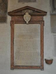 | Keywords: Augsburg Domkreuzgang Nr025 01.jpg Augsburg Dom Kreuzgang Ostflügel 3 Joch Epitaph für Johann Laurentius Johann Hiernoymus und Johann Hieronymus Stor von Ostrach; siehe auch Grabplatte Nr 29; vermutlich Christoph Murmann d J zuzuschreiben vor 1614 ; Kosel Nr 25 attributed to Das Epitaph erinnert an Johann Laurentius Stor von Ostrach 15 Januar 1585 in Tusculum und dort begraben Lizentiat beider Rechte Johann Stor von Ostrach 27 April 1586 gräfl Oettingischer Pfleger und Rat in Wallenstein Dr iur utr Hieronymus Stor von Ostrach 23 Februar 1587 in Arensberg und dort begraben Kanonikus in Augsburg und Bamberg Generalvikar von Bamberg Geheimrat des Erzbischofs von Köln Herzog Wilhelms von Bayern und des Bischofs von Bamberg Johann Hieronymus Stor von Ostrach um 1550; 5 November 1614 Lizenziat beider Rechte Kanonikus in Augsburg und Ellwangen Gründer des Hospitals in Dinkelschreben Generalvikar Domdekan in Augsburg Statthalter in Dillingen; Bruder von 1 und Neffe von 2 und 3 ; Stifter des Epitaphs own 2015-11 UliE1350 <gallery>Augsburg Domkreuzgang Nr025 02 jpg Wappen</gallery> cc-0 Wall mounted church monuments in the cloister of Augsburg Cathedral Reliefs of coats of arms in Augsburg Coats of arms of Stor von Ostrach family Christoph Murmann der Jüngere |