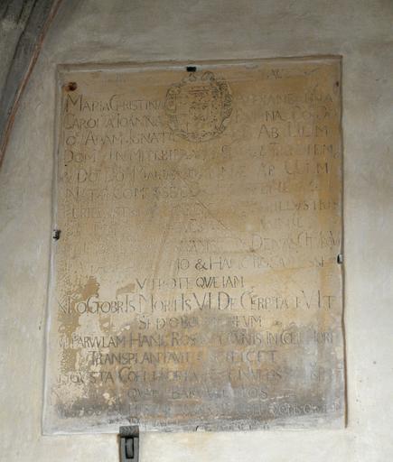 | Keywords: Augsburg Domkreuzgang Nr061.jpg Augsburg Dom Kreuzgang Ostflügel 6 Joch Epitaph für Maria Christina ALexandrina Carolina Johanna Paulina von Ulm 30 Juni 1723 11 Oktober 1725 Tochter des Freiherrn Joseph Adam Ignaz von Ulm-Mittelbiberach und der Maria Johanna geb Gräfin von Grafenegg Inschrift mit Wappen Kosel Nr 61 own 2015-11 UliE1350 cc-0 Wall mounted church monuments in the cloister of Augsburg Cathedral 1725 works in Bavaria Reliefs of coats of arms in Augsburg Coats of arms of Ulm-Erbach-Mittelbiberach family |