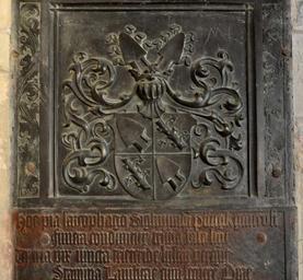 | Keywords: Augsburg Domkreuzgang Nr270 02.jpg Augsburg Dom Kreuzgang Westflügel 1 Joch Epitaph für Sigismund Pflug 31 März 1510 Kanonikus und Domzellererar von Augsburg Dompropst von Meißen und Merseburg Kanzler des Herzogs Albrecht von Sachsen; Kosel Nr 270; Bronze Jörg Muskat zugeschrieben um 1510 Detail Wappen attributed to own 2015-11 UliE1350 <gallery>Augsburg Domkreuzgang Nr270 01 jpg</gallery> cc-0 Wall mounted church monuments in the cloister of Augsburg Cathedral Jörg Muskat 1510 works in Bavaria Reliefs of coats of arms in Augsburg Coats of arms of families of Germany - P Pflug Plowshares in heraldry |