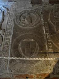 | Keywords: Augsburg Domkreuzgang Nr277.jpg Augsburg Dom Kreuzgang Westflügel 1 Joch Grabplatte für Burkhard von Dettingen Tettingen 16 Februar 1386; Medaillon mit Halbfigur eines Priesters mit Kelch unten Medaillon mit Wappen Dettingen; Meister unbekannt; 3 Viertel 14 Jh ; Kosel Nr 277 own 2015-11 UliE1350 cc-0 Ledger stones in the cloister of Augsburg Cathedral Reliefs of coats of arms in Augsburg Coats of arms of Dettingen family Konstanz | ||||