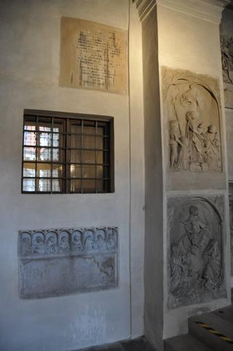 Keywords: Augsburg Domkreuzgang Nr378-381.jpg Augsburg Dom Kreuzgang Westflügel Barockteil Kosel Nr 378 Epitaph für Otto von Schaumberg   3 /4 September 1478 Bruder des Bischofs und Kardinals Petrus von Schaumberg und Heinrich Groß von Trockau   27 /30 März 1501 zu beiden siehe auch Grabplatte Nr 387 Kosel Nr 379 Epitaph für Johannes von Rammingen   1491 Kosel Nr 380 Epitaph für Johannes Drexel   1629 und Nikolaus Drexel   1629 Kosel Nr 381 unterer Teil des Epitaphs für 11 Mitglieder des Domkapitels aus der Familie von Rechberg ursprünglich Bestandteil von Epitaph Nr 384 own 2015-11 UliE1350 cc-0 Wall mounted church monuments in the cloister of Augsburg Cathedral Rechberg Adelsgeschlecht ImageNote 1 1954 766 801 1510 2848 4288 2 Nr 378 ImageNoteEnd 1 ImageNote 2 2104 2398 665 1374 2848 4288 2 Nr 379 ImageNoteEnd 2 ImageNote 3 601 100 1023 1131 2848 4288 2 Nr 380 ImageNoteEnd 3 ImageNote 4 7 2599 1639 1095 2848 4288 2 Nr 381 ImageNoteEnd 4