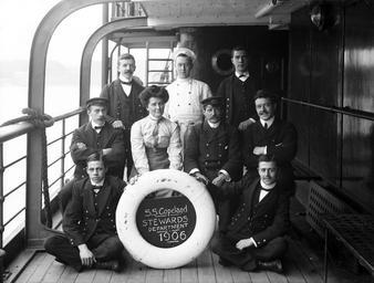 | Keywords: ss copeland sscopeland stewards stewards department stewardsdepartment crew chef glasgow cork clyde shipping company clydeshippingcompany clyde shipping co. clydeshippingco w.b. thompson & co. wbthompsonco w.b. thompson wbthompson torpedoed sunk by u-57 sunkbyu57 u-57 u57 august 1906 1900s ireland cook poole collection poolecollection glass negative glassnegative a.h. poole ahpoole arthur henri poole arthurhenripoole people identified peopleidentified john davies johndavies waterford national library of ireland nationallibraryofireland people groupshot blackandwhite monochrome black and white We're back with the SS Copeland, literally, as this photo is from 1906 and we've already uploaded later photos from 1910 - 18 June and 30 July. While sailing from Glasgow to Cork on 2 December 1917, this ship was torpedoed and sank off Tuskar Rock with the loss of 12 crew. Thankfully, we now know that John Davies escaped the sinking as he moved to Australia in 1912 (id-ed by his great grand-daughter Christine). Date: 25 August 1906 NLI Ref.: P_WP_1605a We're back with the SS Copeland, literally, as this photo is from 1906 and we've already uploaded later photos from 1910 - 18 June and 30 July. While sailing from Glasgow to Cork on 2 December 1917, this ship was torpedoed and sank off Tuskar Rock with the loss of 12 crew. Thankfully, we now know that John Davies escaped the sinking as he moved to Australia in 1912 (id-ed by his great grand-daughter Christine). Date: 25 August 1906 NLI Ref.: P_WP_1605a |