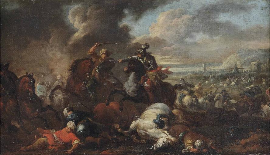 Keywords: August Querfurt (circle) - A battle between knights and Ottomans.jpg Circle of oil canvas cm 23 4 40 5 accession number object history credit line 2012 12 PD-old-100 August Querfurt Battles of the Great Turkish War Sieges involving the Ottoman Empire 18th-century paintings of cavalry in battle Baroque paintings of war |