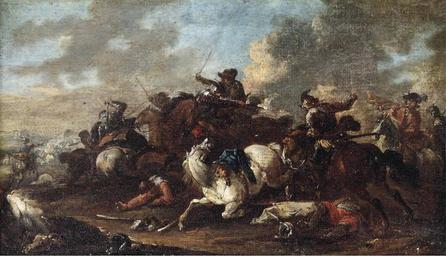 Keywords: August Querfurt (circle) - A cavalry skirmish.jpg Circle of oil canvas cm 23 4 40 5 accession number object history credit line 2012 12 PD-old-100 August Querfurt 18th-century paintings of cavalry in battle Baroque paintings of war