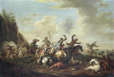| Keywords: August Querfurt - Ein Reitergefecht.jpg Artwork Creator August Querfurt oil canvas cm 51 5 74 accession number object history The Collection of Leg Rot Dr Krippl- Redlich according to a label on the reverse credit line https //www bonhams com/auctions/20611/lot/141/ Bonhams 2013 04 10 lot 141 PD-old-100 August Querfurt 18th-century paintings of cavalry in battle Baroque paintings of war Images from Bonhams | ||||