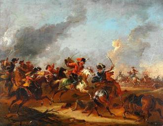 | Keywords: August Querfurt - Schlachtenmotiv.jpg Artwork Creator August Querfurt oil canvas cm 60 76 accession number object history credit line http //www arcadja com/auctions/de/private/querfurt_august/kunstwerken/23661/0/ Stockholms Auktionsverket 2005 12 02 lot 2459 via ARCADJA auction results PD-old-100 Hussars of the 18th century August Querfurt 18th-century paintings of cavalry in battle Baroque paintings of war Images from Stockholms Auktionsverket | ||||