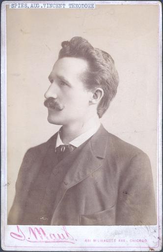 | Keywords: August Spies.jpg August Spies anarchist labor activist hanged under doubtful circumstances following a bomb attack on police at the Haymarket Riot http //www chicagohistory org/hadc/visuals/35V0760 htm Maul Jacob photographer 1886 PD-old August Spies |
