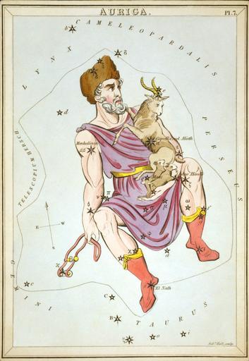 | Keywords: Aurigaurania.jpg en Auriga as depicted in http //www ianridpath com/atlases/urania htm Urania's Mirror a set of constellation cards published in London c 1825 Astronomical chart showing Auriga the Charioteer holding a ram two ewes and a bridle forming the constellation LOC-image cph 3g10056 Restoration by Adam Cuerden http //adamcuerden deviantart com/gallery/ offset 72 /d31j225 1825 Creator Sidney Hall Artwork PD-old-100-1923 Restoration cc-by-3 0 Original upload log page en wikipedia Aurigaurania jpg 2009-05-18 15 43 Urania's Muse 256×367× 15969 bytes <nowiki>Auriga as depicted in http //www ianridpath com/atlases/urania htm Urania's Mirror a set of constellation cards published in London c 1825 PD-old-100-1923 </nowiki> Auriga Urania's Mirror Images from deviantART |
