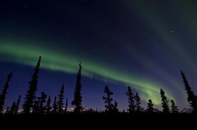 Keywords: aurora northern lights aurora borealis borealis green phenomenon swirl sky night lights trees silhouettes denali national park recreation area alaska usa america