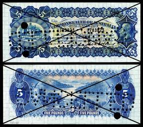 | Keywords: AUS-13a-Commonwealth Bank of Australia-5 Pounds (1924).jpg Commonwealth Bank of Australia five-pound cancelled specimen note 1924 1924 note 2015 image Image by Godot13 Commonwealth Bank of Australia Institution Smithsonian National Museum of American History Use of this image should give credit to the National Numismatic Collection National Museum of American History other versions Assessments 1 Banknotes of the Australian pound “ Series of 1918 and 1923 “1925 PD-Australia-currency self cc-by-sa-4 0 Godot13 National Numismatic Collection <br>National Museum of American History 2013030510011547 2015 User Godot13 NNC Banknotes scanned by User Godot13 NNC Foreign Banknotes Banknotes of Australia Uploaded with UploadWizard George V of the United Kingdom on banknotes Coats of arms of Australia on money Hawkesbury River Banknotes with a face value of 5 Featured Pictures English Wikipedia by User Godot13 NNC banknote Featured Pictures English Wikipedia |