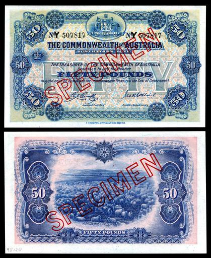 | Keywords: AUS-8c-Commonwealth of Australia-50 Pounds (1918).jpg Commonwealth of Australia fifty-pound specimen note 1918 1918 note 2015 image Image by Godot13 Thomas S Harrison Engraver Printer for the Commonwealth of Australia Institution Smithsonian National Museum of American History Use of this image should give credit to the National Numismatic Collection National Museum of American History other versions Assessments 1 Banknotes of the Australian pound “ Series of 1918 and 1923 “1925 PD-Australia-currency PD-1923 self cc-by-sa-4 0 Godot13 National Numismatic Collection <br>National Museum of American History 2013030510011547 2015 User Godot13 NNC Banknotes scanned by User Godot13 NNC Foreign Banknotes Banknotes of Australia Uploaded with UploadWizard Coats of arms of Australia on money Merino Banknotes with a face value of 50 Featured Pictures English Wikipedia by User Godot13 NNC banknote Featured Pictures English Wikipedia |