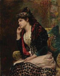 | Keywords: Ausencia, de Francisco Díaz Carreño (Museo del Prado).jpg El lienzo llamado Ausencia representa a una mujer ausente y pensativa 1886 Oil on canvas cm 70 55 Institution Museo del Prado https //www museodelprado es/coleccion/galeria-on-line/galeria-on-line/obra/ausencia/ https //www museodelprado es/coleccion/galeria-on-line/galeria-on-line/obra/ausencia/ PD-old-100 other versions Uploaded with UploadWizard Francisco Díaz Carreño 19th-century paintings in the Prado Museum 1886 paintings | ||||