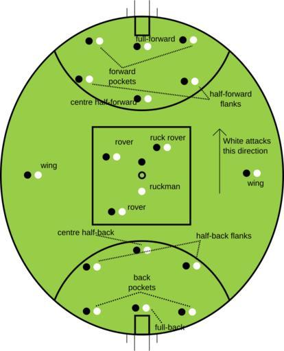 Keywords: Aussie rules ground positions.svg SVG source of the Aussie Rules ground positions Image created by Robert Merkel and placed in the public domain by the author Robert Merkel Bitmap version Image aussie_rules_ground_positions_medium png Robert Merkel original upload log page en wikipedia Aussie_rules_ground_positions svg 2008-01-23 04 08 Beamerized 642×795× 27704 bytes <nowiki></nowiki> 2003-07-22 09 07 Robert Merkel 744×1052× 34856 bytes <nowiki>SVG source of the Aussie Rules ground positions Image created by Robert Merkel and placed in the public domain by the author</nowiki> Australian rules football field |
