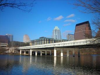 Keywords: austin texas downtown bridge architecture skyline sky river water buildings city cities structure building