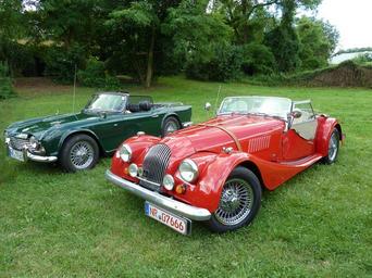 Keywords: austin triumph old fifties auto oldtimer convertibles red green vehicle automotive rarely spotlight spoke wheels body mirror british