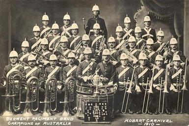 | Keywords: Australia Derwent Regiment Band, 1910.jpg en Australia Derwent Regiment Band 1910 1910 Taken from http //www ibew org uk/vbbp-oz htm this site author Custom license marker 2014 03 09 PD-Australia Music of Australia Uploaded with UploadWizard |